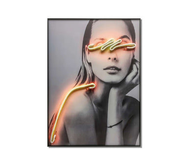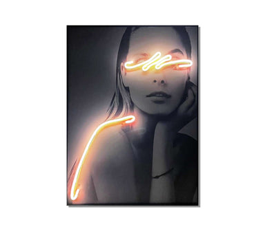 Overview Introducing "Radiant Grace: LED-Lit Lady with Glowing Eyes" - a stunning portrayal of elegance and allure, where a beautiful woman is ador...