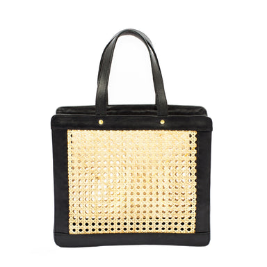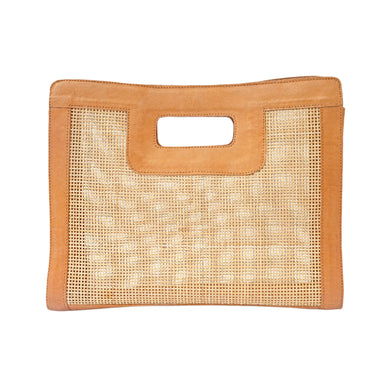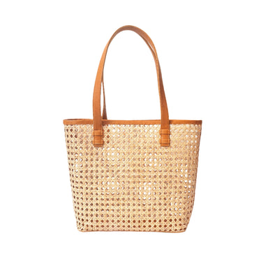 A richly handwoven checkered pattern raffia and over-the-shoulder leather handles detail lend a boho-inspired style to a spacious tote bag that wil...