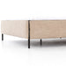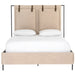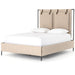 Channel surfing. A lux take on a vintage-inspired style, upholstered with boucle-like fabric in a neutral sand. Parawood legs run the height of a heavily channeled headboard, for a lengthy look with textural depth.