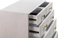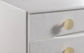 Born to make a statement, the Divine collection offers glam design that'll take your space to the next level. The brass handles and leg-tips pop in contrast to the white finish and the undulating surface provides texture and added sophistication. Combine the chest with the nightstand for the ultimate look.