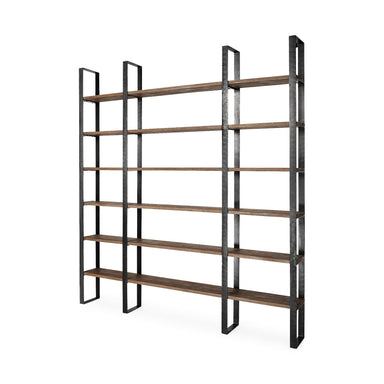 Super versatile, the 90-inch brown distressed iron and solid wood six tier bookcase is an ideal piece for your living room, study, or office. Featu...