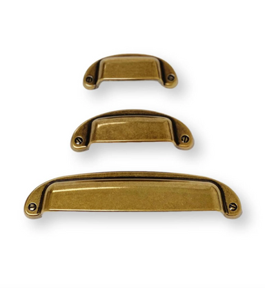 Drawer Cup Pull "Capri" in Antique Brass - Brass Cabinet Hardware. This item goes well with our Plain Antique Brass Ring Pulls and our other Capri ...