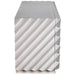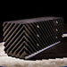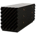 A bold six drawer dresser with high relief diagonal ribs give a sense of movement and industrial style. Our Hand Rubbed Black finish is removed at the top of each rib to reveal the golden tone wood underneath, and further highlight the graphic lines.