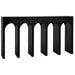 A bold six drawer dresser with high relief diagonal ribs give a sense of movement and industrial style. Our Hand Rubbed Black finish is removed at the top of each rib to reveal the golden tone wood underneath, and further highlight the graphic lines.