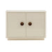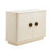 The high-gloss finish of the opal lacquer oak chest will bring a bold and glamorous statement to any room. Perfectly radiused corners and oversized vintage brass hardware intensify the sleek design. Two drawers and adjustable shelves provide ample storage.