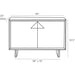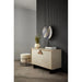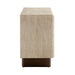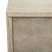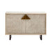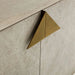 Classic craftsmanship and modern details create this unique cabinet known as the Naomi. Crafted from oak veneer, it is finished in ivory smoke and accented with vintage brass hardware. A marquetry triangle pattern of wood grain has been applied to the veneer, mimicking the triangular pulls and creating cohesiveness throughout the design. Inside the double-door cabinet lies an adjustable shelf. Wood will vary.