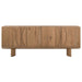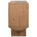 Made from thick oak veneer, a shape-driven sideboard features overscale proportions, semicircle shaping and hand-applied half-moon hardware. Dual posterior cutouts for seamless cord management.