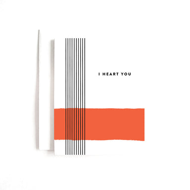 I HEART YOU CARD Size A2 (4.25 inches by 5.5 inches folded).Packaged in a cello sleeve with corresponding white envelope.Blank inside, ready for yo...