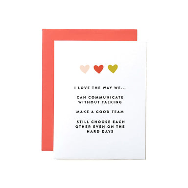 I Love the Way We... Love/Valentine's/Anniversary Card Size A2 (4.25 inches by 5.5 inches folded).Packaged in a cello sleeve with corresponding r...