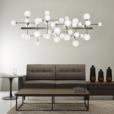 Description Minimalist and modern, the Harrison is a paradigm of linear lighting. Its lined silhouette presents six opal glass globes and is com...