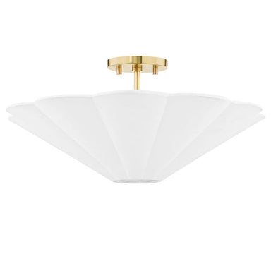 Illuminate your home in style with this gold shaded two light metal dimmable ceiling light with white shades. With its gold finish, this light fixt...