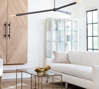 Description The aerodynamic Concorde chandelier, inspired by a supersonic airliner, wears a sleek Natural Bras finish with a brass color interio...