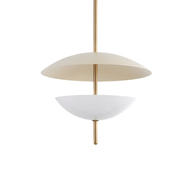 Description Dion captures modern organic design with its round, slender Patina Brass rod that pierces through a pair of domed shades in warm, ne...