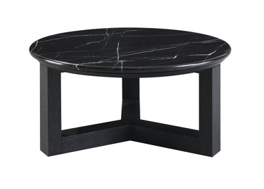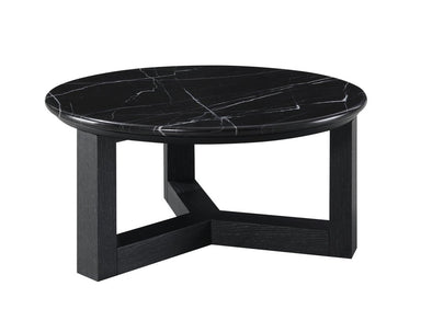 Give your living room, family room, or office the perfect anchor piece with this 32-inch black genuine marble and wood round cross legs coffee tabl...