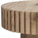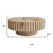 This stylish 32-inch natural colored wood round pedestal coffee table is sure to inspire compliments no matter where it sits. Create an inspiring atmosphere in most any room with this natural manufactured wood table. Featuring lots of wood grains and ribbed texture on the sides, this table adds a clean modern minimalist vibe to your space. Ready to fit into a living area, bedroom, lounge, or office, this low round coffee table is for you. 13.80-inch h x 31.50-inch w x 31.50-inch d.
