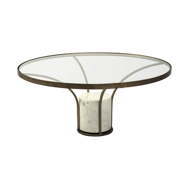 This good looking 36-inch clear and white and gold glass and stone round coffee table is sure to inspire compliments no matter where it sits. The w...