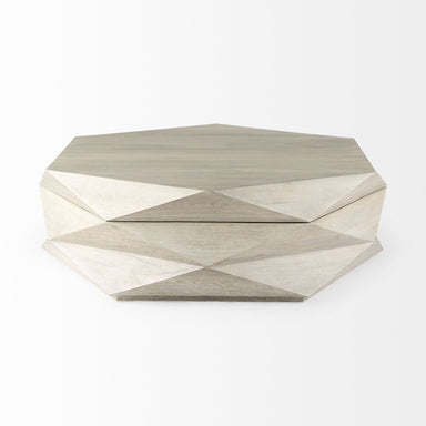 Make a statement with the 32" Brown And White Solid Wood and Marble Geo Coffee Table and infuse a dash of character and personality into your space...