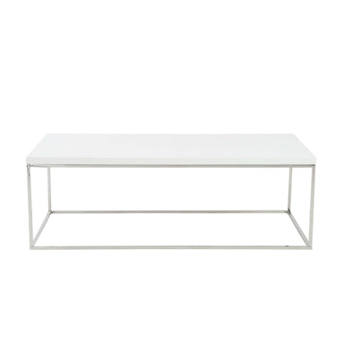 Add handsome, fashionable design to your living space with this 47-inch white and silver metal coffee table. The base of this table is made from me...