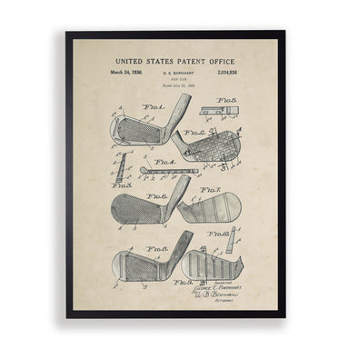 This vintage-inspired print, framed in a black wooden frame, features a three golf clubs patent. Sized at 16 inches by 20 inches, this made in the ...