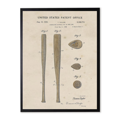 This vintage-inspired print, framed in a black wooden frame, features a baseball bat patent. Sized at 16 inches by 20 inches, this made in the USA ...