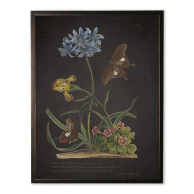 This vintage-inspired print, framed in a copper and black wooden frame, features blue and yellow flowers surrounded by butterflies. Sized at 16 inc...