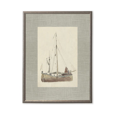 This watercolor reproduction, matted and framed in a silver-beaded wooden frame, features a painted sailboat. Sized at 16 inches by 20 inches, this...