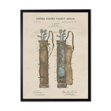 This vintage-inspired print, framed in a black wooden frame, features a golf bag patent. Sized at 16 inches by 20 inches, this made in the USA fram...