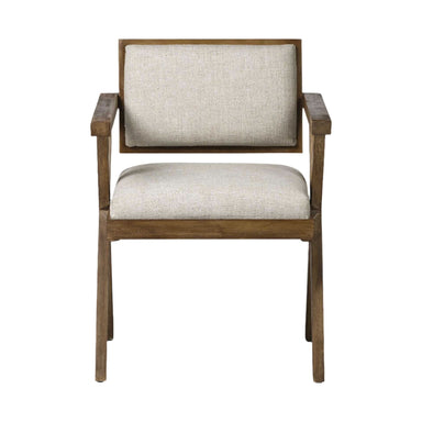 Out with the old and in with the new, this cream and brown upholstered fabric dining arm chair can perfectly suit any dining table. Complete with s...