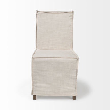 Make your dining room stand out with the set of two cream and brown upholstered fabric side chairs. This armless chair has a sleek silhouette makin...