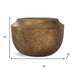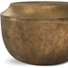 Distinctive in style the 13-inch antiqued brass aluminum round drum end table radiates a versatile charm. This table is made from aluminum in a antiqued brass color throughout the base and top. Side tables are a great way to flank your sofa, use as an accent next to your favorite chair, or can even be used bedside. This versatile table is a great accent for most any room. 13.00-inch h x 21.00-inch w x 21.00-inch d.