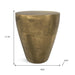 Optimize your space and add some charm to your room with the 18-inch antiqued brass aluminum round end table. This table features quality construction from aluminum and an updated monotone color scheme with antiqued brass as the main color on both the top and the base. A great accent on either side of the sofa or bed, this adorable end or side table is just what you need. You can also use it as an entryway table to hold your keys. 17.75-inch h x 16.50-inch w x 16.50-inch d.