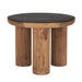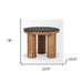 Show off your exquisite taste with this 18-inch brown and black reclaimed wood distressed round end table. The brown coloration of the high quality reclaimed wood three legged base marries nicely with the black manufactured wood top. The purposefully distressed finish gives this table an authentically rustic feel. A great accent on either side of the sofa or bed, this chic two-tone end or side table is just what you need. You can also use it as an entryway table to hold your keys. 18-inch h x 23.5-inch w x 23.5-inch d.