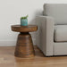 Distinctive in style the 18-inch brown solid wood round end table radiates a versatile charm. Made of solid wood, the brown coloration throughout gives this piece an updated and refreshing look. Side tables are a great way to flank your sofa, use as an accent next to your favorite chair, or can even be used bedside. This versatile table is a great accent for most any room. 17.70-inch h x 15.75-inch w x 15.75-inch d.