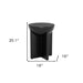 Show off your exquisite taste with this 20-inch black solid wood round pedestal end table. This table features quality construction from solid mango wood that features a unique geometric pedestal base houses a bowl shaped half circle top surface. The updated monotone color scheme features black as the main color on both the top and the base. This piece will create a striking and bold accent on either side of the sofa or bed or in any space you add it. You can also use it as an eye catching entryway table to hold your keys. 20.1-inch h x 16-inch w x 16-inch d.