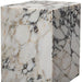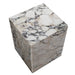 Show off your exquisite taste with this 20-inch ivory marble and wood square block end table. The ivory coloration runs throughout this good looking manufactured wood and marble table. A great accent on either side of the sofa or bed, this adorable end or side table is just what you need. This versatile table is a great accent for most any room. 20-inch h x 15-inch w x 15-inch d.