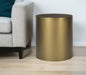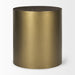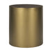 Show off your exquisite taste with this 22-inch antiqued gold and brown metal and solid wood drum end table with storage. The antiqued gold coloration of the high quality cylindrical metal base marries nicely with the brown solid wood top. The purposefully distressed finish gives this table an authentically rustic feel, while the top opens to reveal hidden storage that is great for the remote, small pillows, blanket, or accessories. An ideal location for placing your snacks and drinks, and a place to keep your lamp, frames, or other accessories. 22-inch h x 20-inch w x 20-inch d.