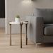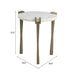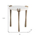 Show off your exquisite taste with this 22-inch white iron pedestal end table. Made of iron, the white coloration throughout gives this piece an updated and refreshing look. An ideal location for placing your snacks and drinks, and a place to keep your lamp, frames, or other accessories. You can also use it as an entryway table to hold your keys. 21.5-inch h x 19-inch w x 19-inch d.
