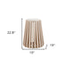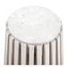 Distinctive in style the 23-inch white and natural distressed marble and wood round drum end table radiates a versatile charm. The natural coloration of the high quality manufactured wood base marries nicely with the white marble top. Complete with a purposefully distressed finish, this table has an aged, vintage, and rustic feel. A great accent on either side of the sofa or bed, this adorable end or side table is just what you need. You can match it with other pieces to get the ideal look for your place. 22.8-inch h x 15-inch w x 19-inch d.