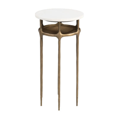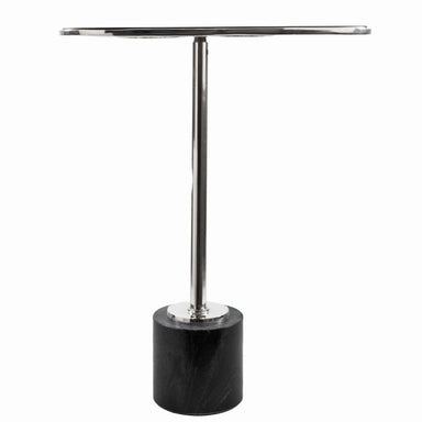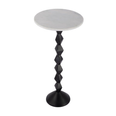 Distinctive in style the 25-inch white and black marble and aluminum round pedestal end table radiates a versatile charm. The black coloration of t...