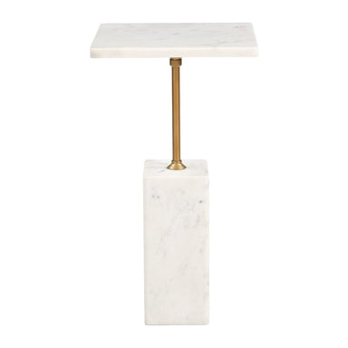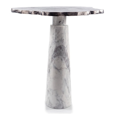 Distinctive in style the 22-inch silver and white aluminum and marble pedestal end table radiates a sense of luxurious and modern charm. The silver...