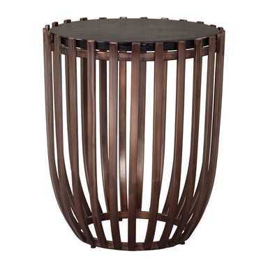 Distinctive in style the 20-inch copper metal round end table radiates a versatile charm. This table is made from metal in a copper color throughou...