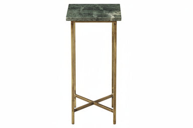 Show off your exquisite taste with this 21-inch green and gold marble square end table. The base of this table is made from iron in an open geometr...