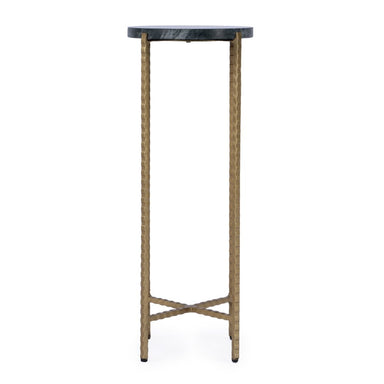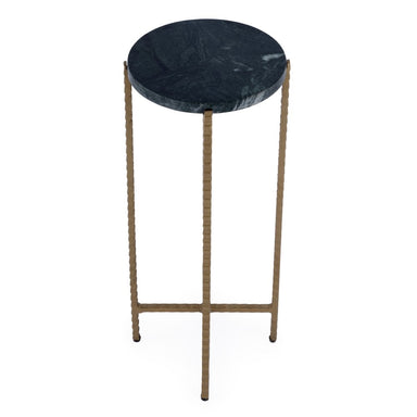 Show off your exquisite taste with this 21-inch green and gold marble and iron drink size round end table. The rustic antiqued gold coloration of t...