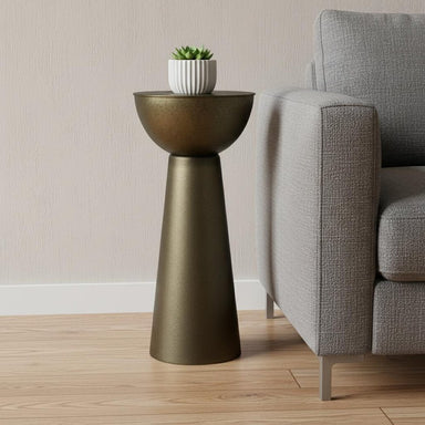 Optimize your space and add some charm to your room with the 22-inch bronze aluminum pedestal end table. Made of aluminum, the bronze coloration th...