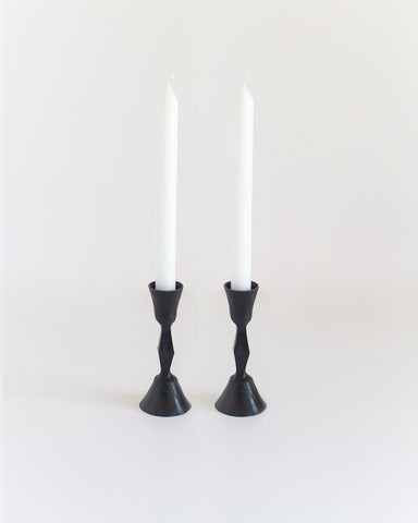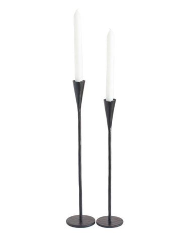 This unique set of candle holders draws inspiration from nature's sleek organic beauty. Hand-forged by traditional blacksmiths in India, our iron c...