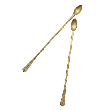 Long brass bar spoons bring modern flair to your bar with their elongated silhouettes, gently hammered texture and matte golden hue. Use them in yo...