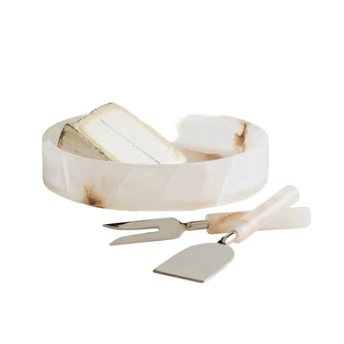 Rolled alabaster handles and shiny stainless steel heads make these cheese tools look posh, yet not fussy. The flat, spade-like knife is ideal for ...