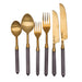 Each piece is thoughtfully designed, featuring gold-toned stainless steel complemented by a handmade sheer handle in a bluey-grey colorway. Comprising 6 essential pieces, this set seamlessly pairs well with many Ro'Table collections, particularly with Shimla Social.