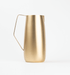 This smart-looking pitcher is hand-crafted from new brass sheet and buffed to a nice shine. A generous 64 oz. capacity makes it great for entertaining or as a handy bar accessory. The angled handle provides an interesting juxtaposition to the rounded pitcher, whose rim features a slightly pinched spout for successful pouring.