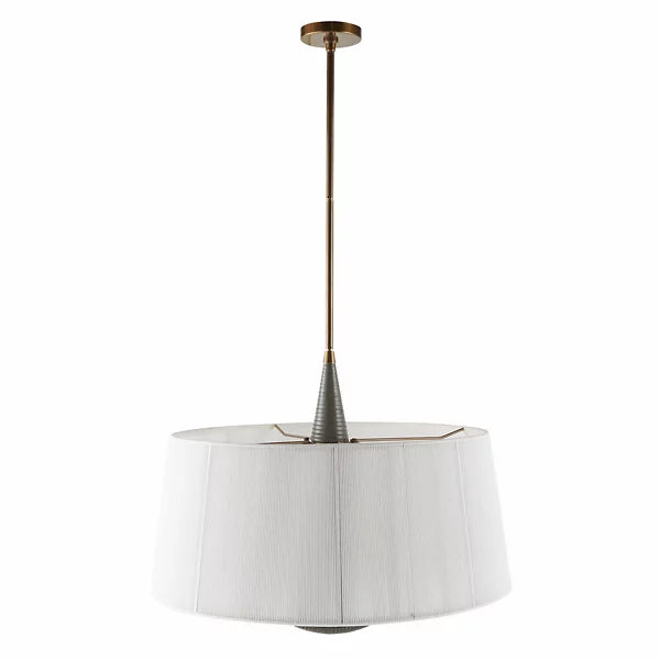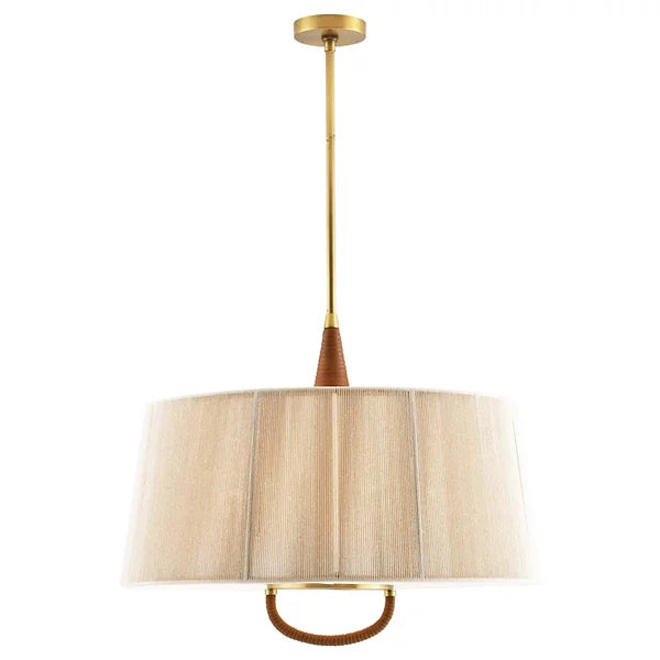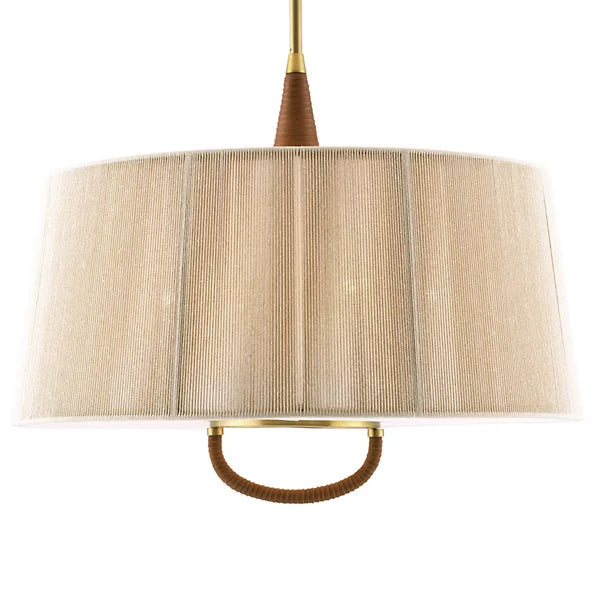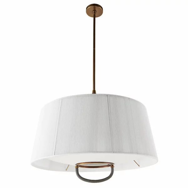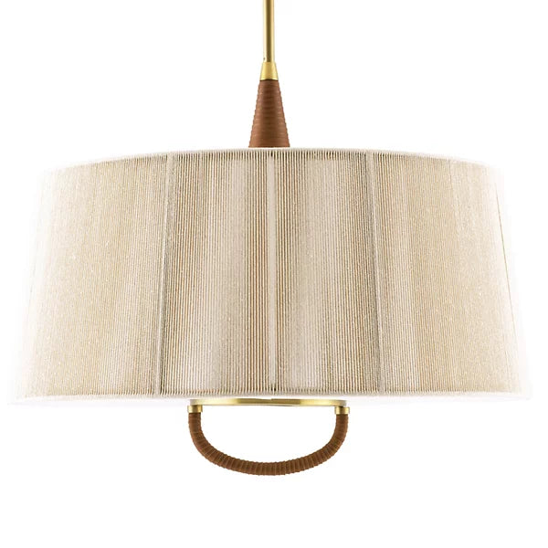 The Middlebury Pendant from Arteriors is a cohesive piece, finding the middle point between bold, masculine materials and soft feminine forms. It looks natural across various home styles with a modern aesthetic. The pendant’s slender metal suspension lets one get versatile with placement. The finish of the metal looks handsome against the rich leather wrap of the topping cone and the rounded handle accent below. Crafted in an always lovely tapered form, the shade surprises with a bevy of lines made by stretching the fine cotton string. This shade displays slicing highlights as a downpour of soft illumination flows out.